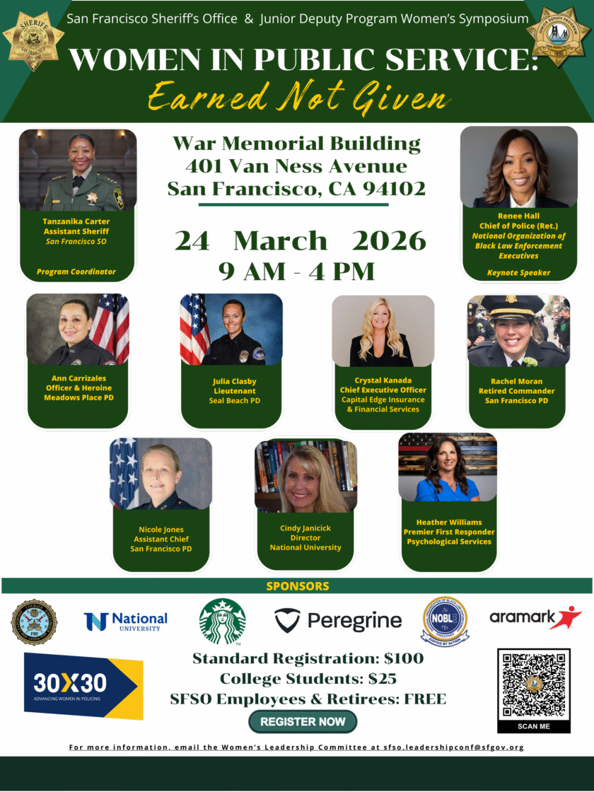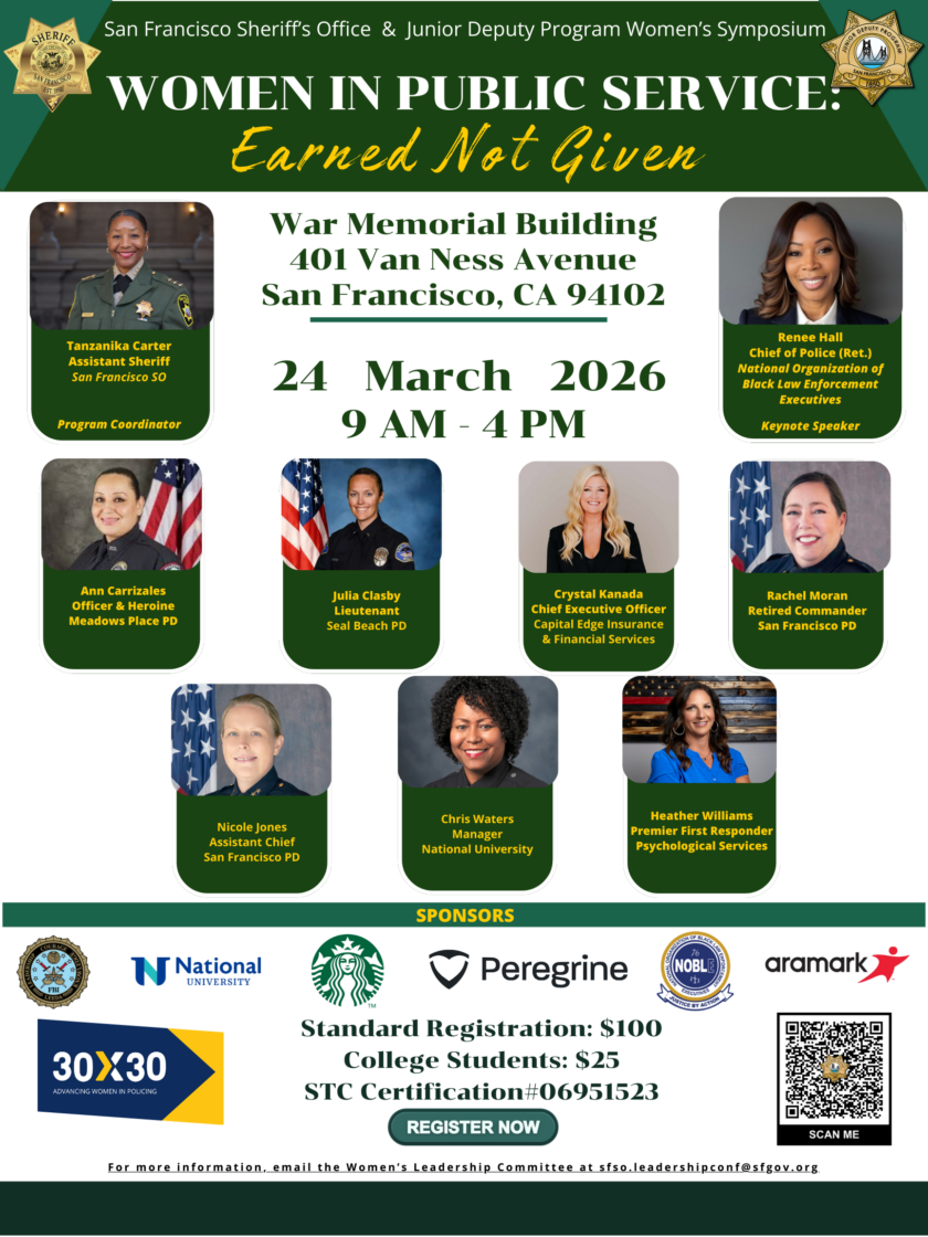 The 30×30 Initiative is a national effort to increase the number of women in law enforcement to 30% by 2030. The San Francisco Sheriff’s Office proudly participates in this movement, working to create a more inclusive and supportive environment for women officers. This initiative brings together police leaders, researchers, and professional organizations to drive meaningful change. Encouraging low- and no-cost actions helps ensure that department policies and culture support the success of women in law enforcement.