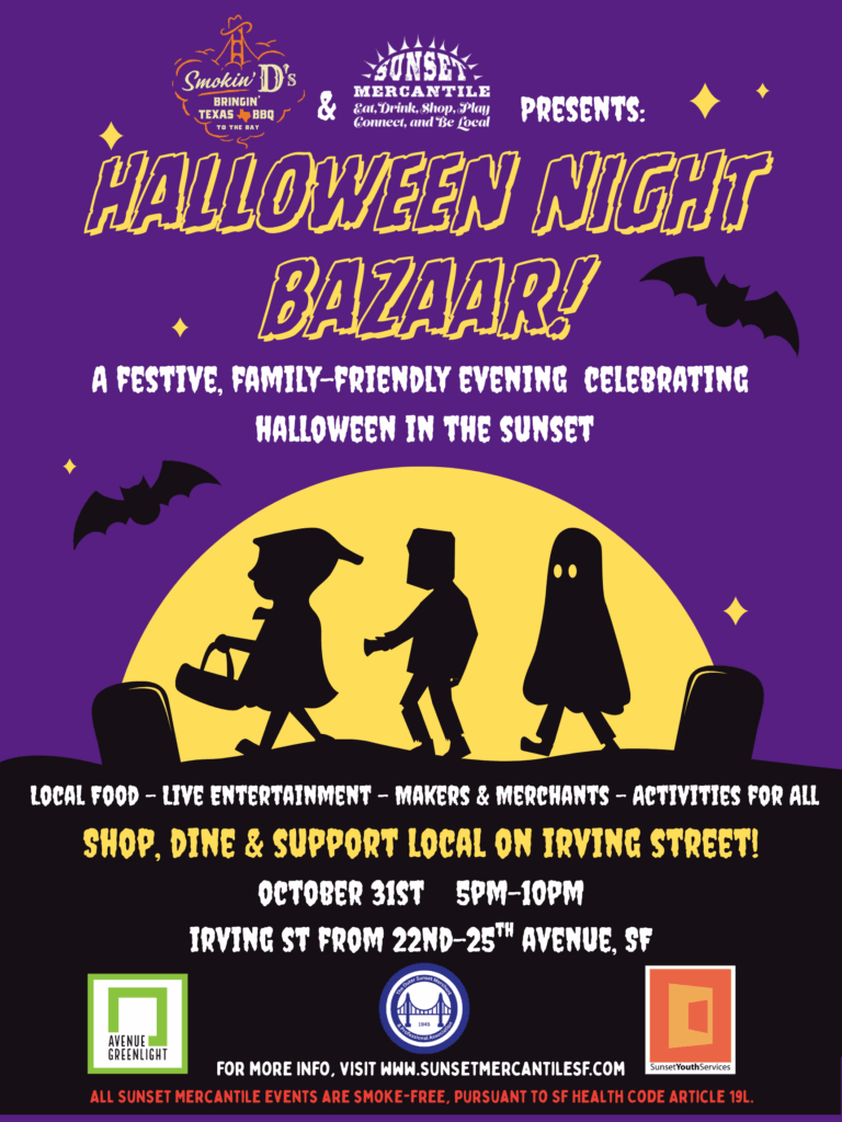 10/31/25 HALLOWEEN NIGHT BAZAAR – IRVING ST 22ND-25TH AVE. 5PM-10PM